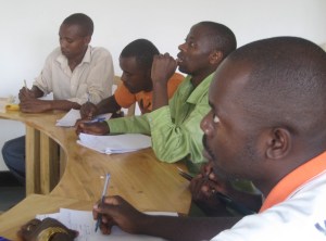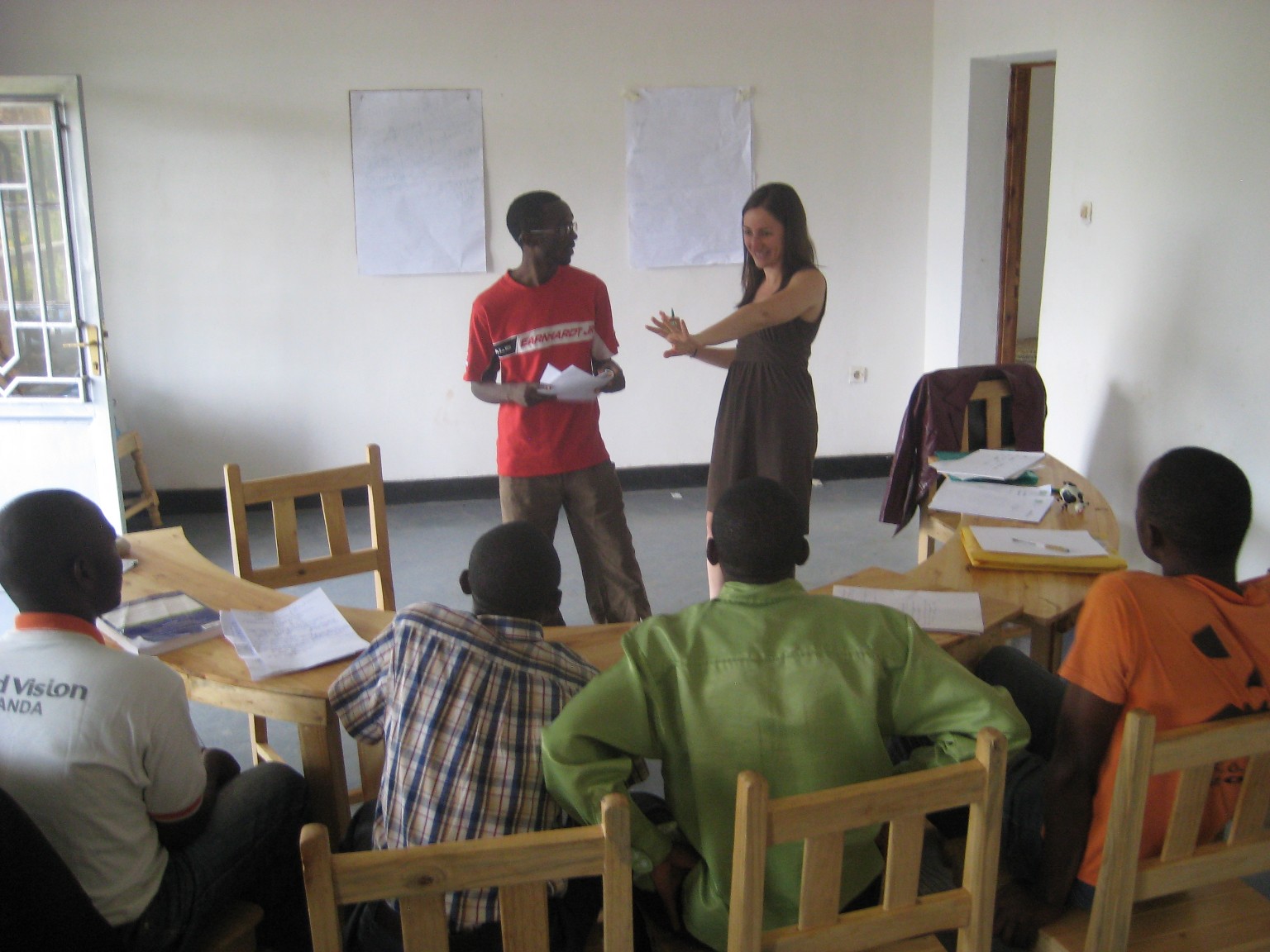 NDERA, Rwanda – We dived straight into lessons here at Gardens for Health International (GHI): six Barefoot MBA topics for GHI’s field officers and a little Kinyarwanda for me. Sunday, GHI’s program associate, facilitated both.