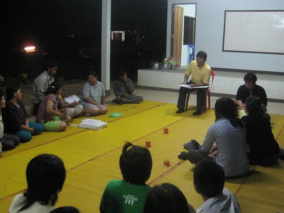 LAMPLAIMAT, July 25 — Our students trickle in. They come from different villages, after work, after farming. They take motor-scooter taxi rides, ride their own scooters or get rides from friends or family members. As they arrive, Khun Tom keeps them entertained with jokes (not all of which elicit laughter) and discussions to get to know each other.