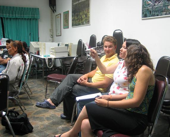 LAMPLAIMAT, July 26 We’re amazed at how well the first day went. Having finished writing everything and testing it yesterday before class, we’re allowing ourselves a slow day that starts later than our usual 8 a.m. We spend our day finishing the agenda and timing the lesson plan, and we plan to meet this afternoon to discuss lessons from last night and the final plan for tonight.