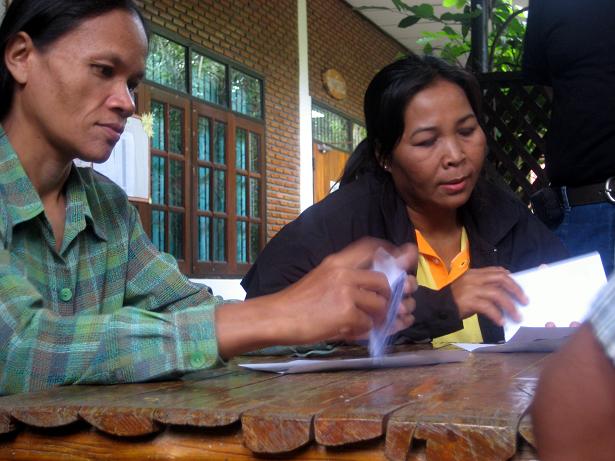 LAMPLAIMAT, July 23 – After a four-hour van ride, we make it to Lamplaimat to learn that a nearby village is having the first meeting of its Village Development Committee, the group PDA gathers to lead a village’s Village Development Bank. (This is more relevant to our host organization, PDA, and its going into rural villages to introduce and encourage villagers to create their own banking system, grow their local economy and pull themselves out of poverty – a far more empowered state than calmly waiting for the next round of NGO handouts and tolerating illness, poverty, lack of education and deteriorating village social conditions. This isn’t a forum to detail PDA’s work, or our high opinion of what it’s doing, other than as context to testing our curriculum. For background on our project, see the links in the sidebar to the left.) We hope the meeting will provide further insight into the mindset of villagers who come together to lead new initiatives in their village and begin the journey out of debt and away from subsistence living. We’ve come to meet them, to listen to their questions of process of the formation of a community-owned village bank and to better understand the individuals who will be receiving a Barefoot MBA, or at least the precursor to such a degree (no, it’s not really a degree, but a set of concepts we hope will help in their pursuit of a better life).